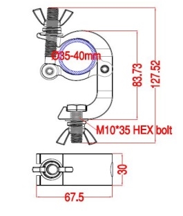 Аксессуары: S-образная рукоятка сверху, болт с квадратной головкой M10*35 и контргайка снизу