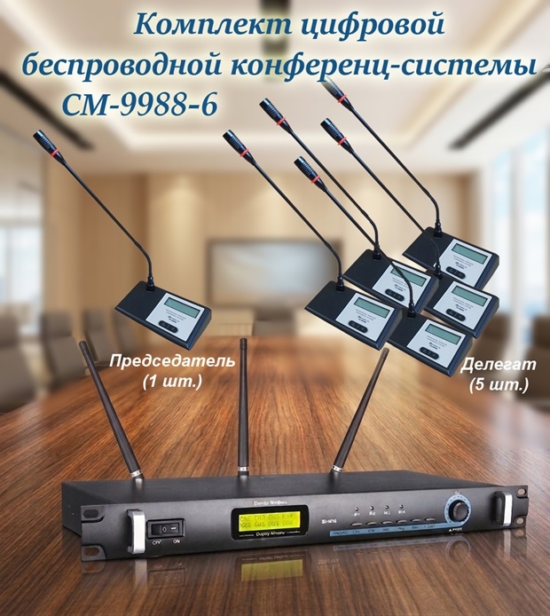 Комплект цифровой беспроводной конференц-системы Emiter-S CM-9988-6 для конференц-залов, школ, институтов